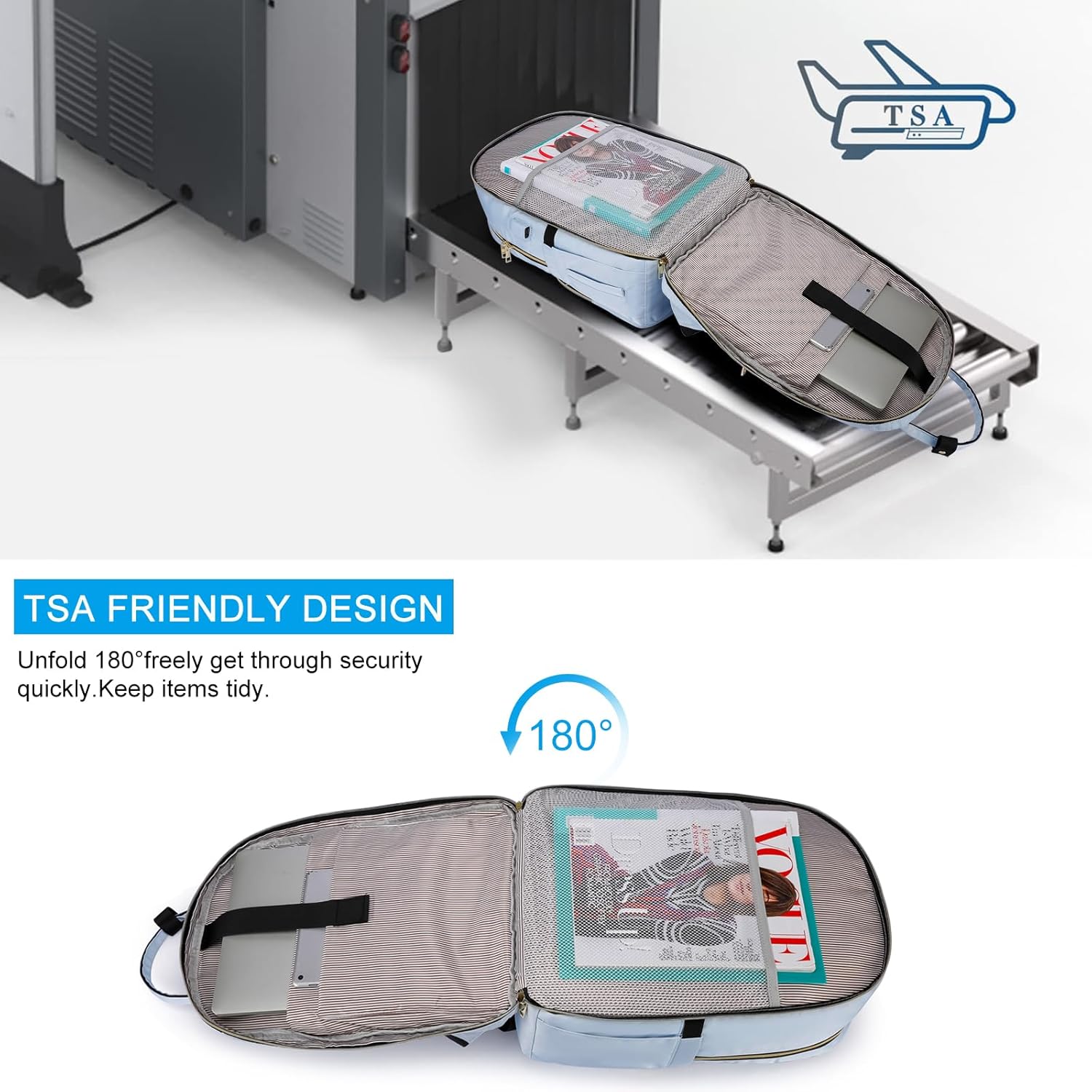 - 【TSA-Design Und Gepäckgurt】TSA-Freundliche rucksack können problemlos von einem Sicherheitsmaschine gescannt werden.Entfaltet den Schulrucksack am Checkpoint frei um 90-180 Grad und der Laptop bleibt flach,ohne ihn aus dem Rucksack zu