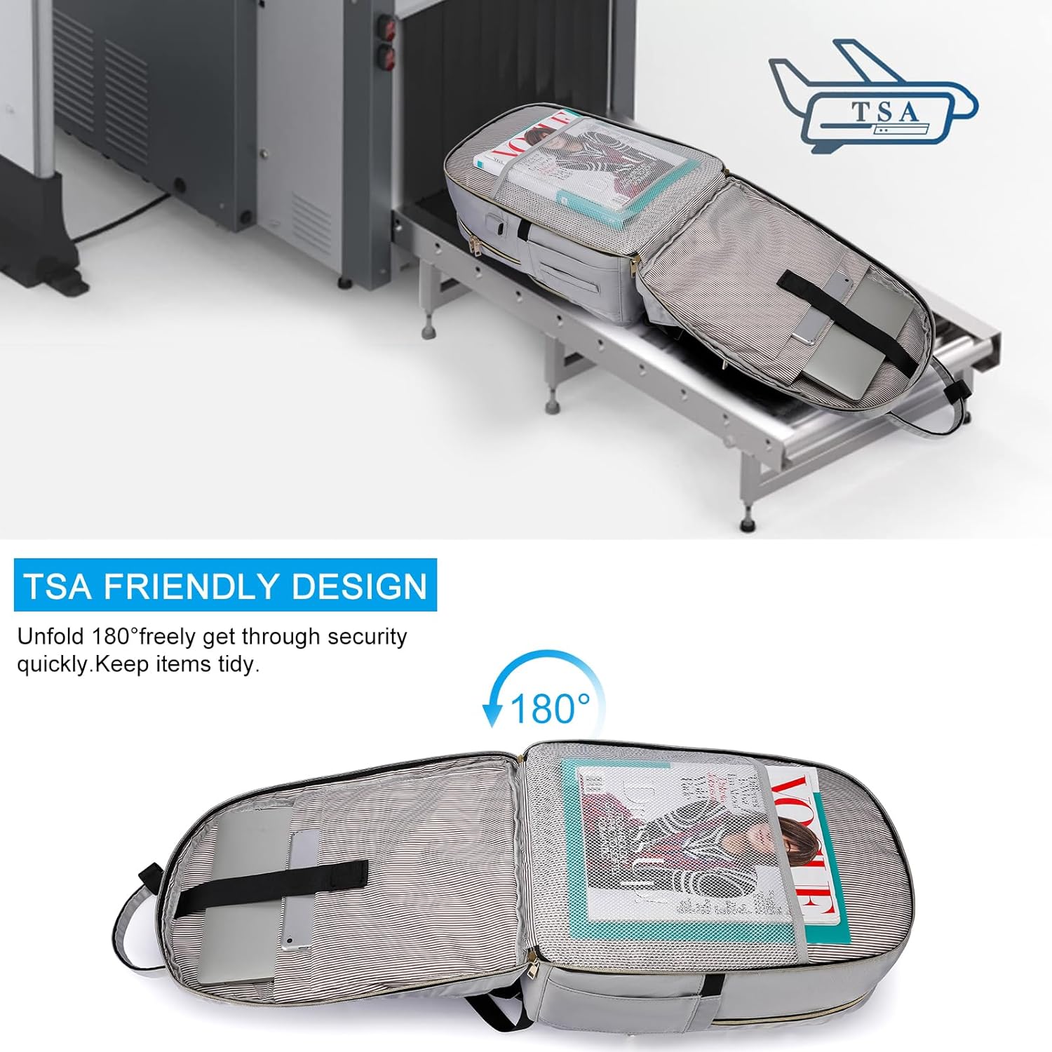 - 【TSA-Design Und Gepäckgurt】TSA-Freundliche rucksack können problemlos von einem Sicherheitsmaschine gescannt werden.Entfaltet den Schulrucksack am Checkpoint frei um 90-180 Grad und der Laptop bleibt flach,ohne ihn aus dem Rucksack zu