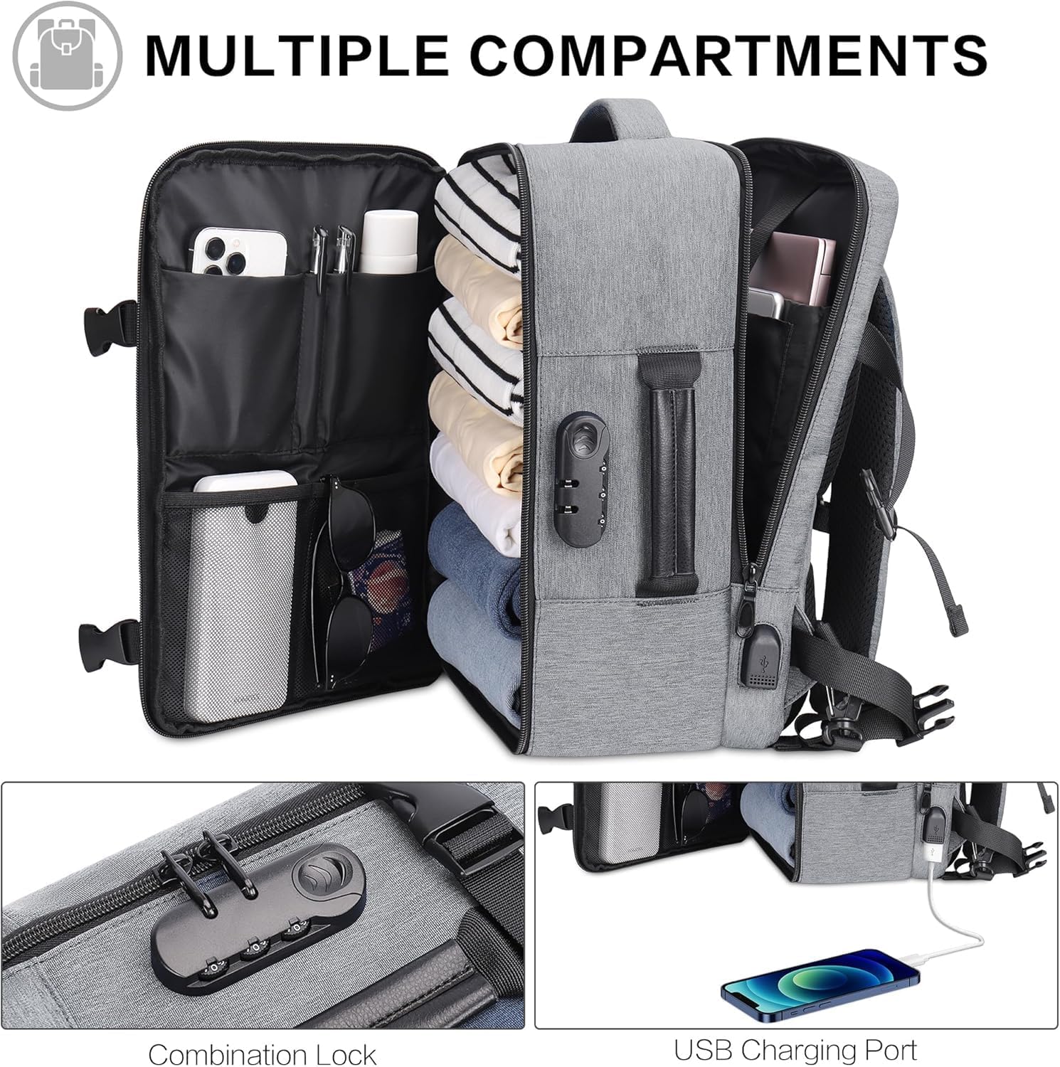 - 🍀【Kompakt und vielseitig】 Als kompakter und vielseitiger Kabinenhandgepäck-Rucksack funktioniert er auch perfekt als Handgepäck, Koffer, Reiserucksack, Reisetasche, Weekender, Arbeitsrucksack, Laptoptasche, usw. Ideal für Kurzreisen,