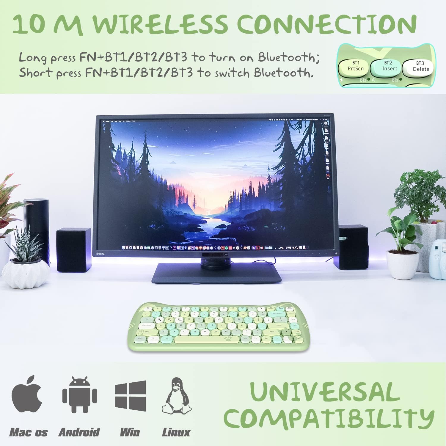 - 【Wide Kompatibel】Diese drahtlose Tastatur verfügt über drei Verbindungskanäle, die lange Drücken von Fn + Bt1 / Bt2 / Bt3 für etwa 3 Sekunden lang, das blaue Licht blinkt, suchen nach der Tastatur Bluetooth, um eine Verbindung herzustellen,