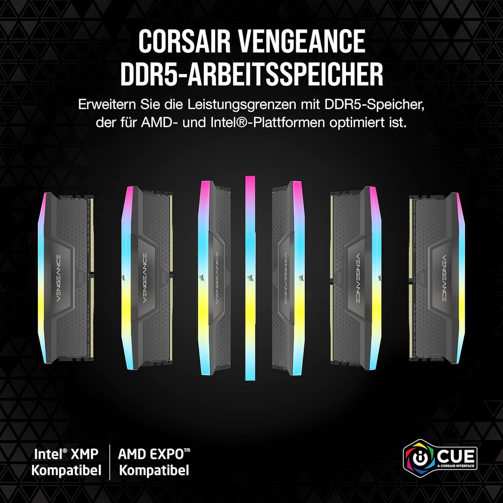 Corsair VENGEANCE RGB DDR5 RAM 64GB (2x32GB) 6000MHz CL40 AMD EXPO iCUE Kompatibel Computer Speicher