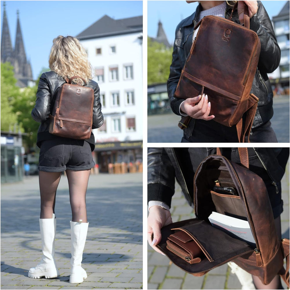 Corno d´Oro Premium Rucksack Damen Leder Elegant I Handgefertigt Lederrucksack Vintage Laptoprucksac