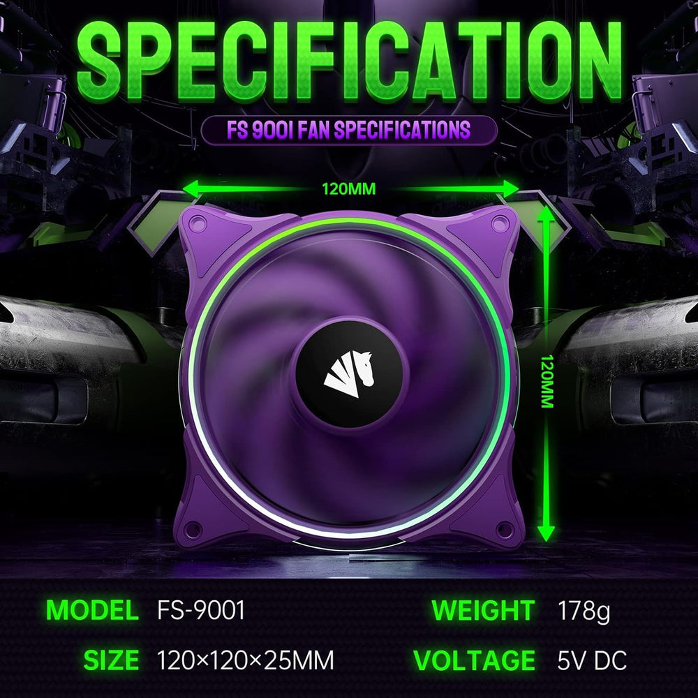Asiahorse FS-9001 PWM RGB Gehäuselüfter, 120MM PC Lüfter, Leiser Computerlüfter für PC-Gehäuse und C