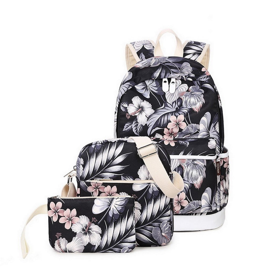 Acmebon Modischer Schulrucksack für Mädchen Laptop-Rucksack-Set 3-teilig für Frauen Blumen, Blumen