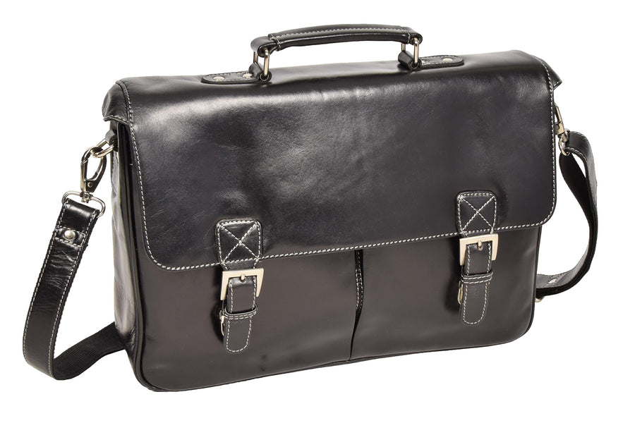 A1 FASHION GOODS Herren Echtes SCHWARZ Leder Aktenkoffer-Laptop Datei Fall Schulranzen Büro Business