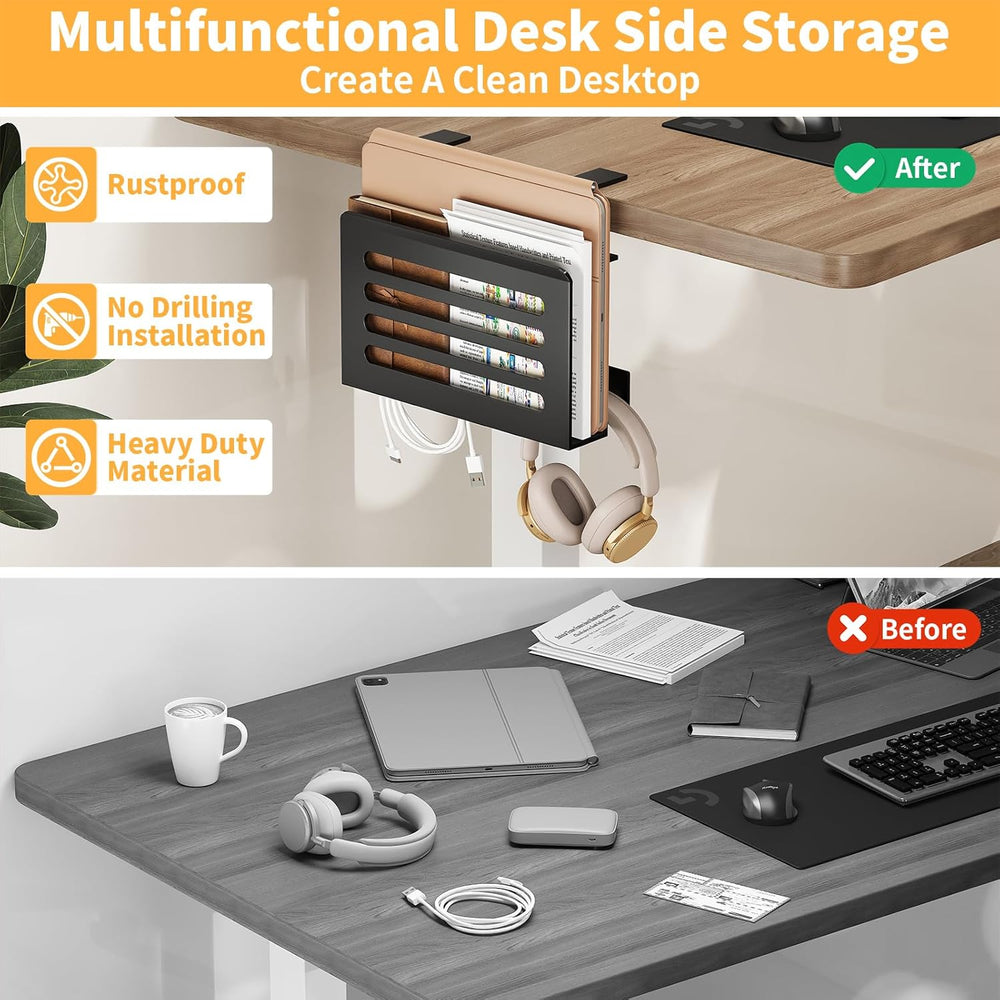 ROLIZOE Schreibtisch Seitenaufbewahrung mit Häkchen Laptop Ständer Metall Rutschfest Unter Schreibti