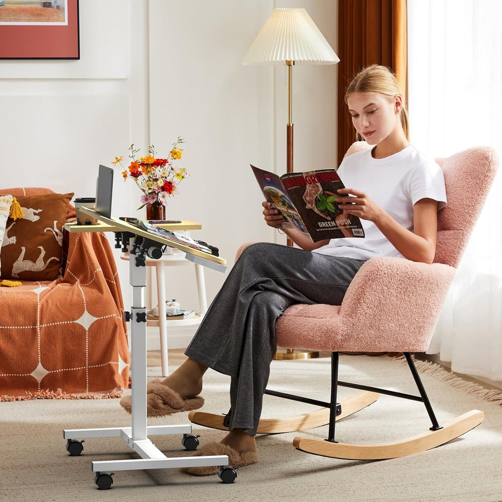 Betttisch auf Rollen Höhenverstellbar, Mobiler Pflegetisch mit Versteckten Rollen Stehpult Laptoptis
