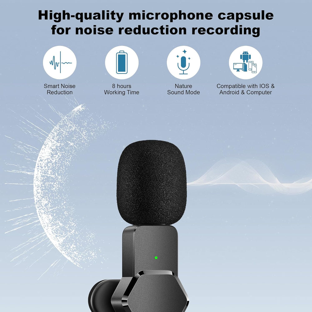 AKOFIC Lavalier Mikrofon Kabellos für iPhone/Android Telefon/Laptop, Mini Handy Mikrofon, Profession