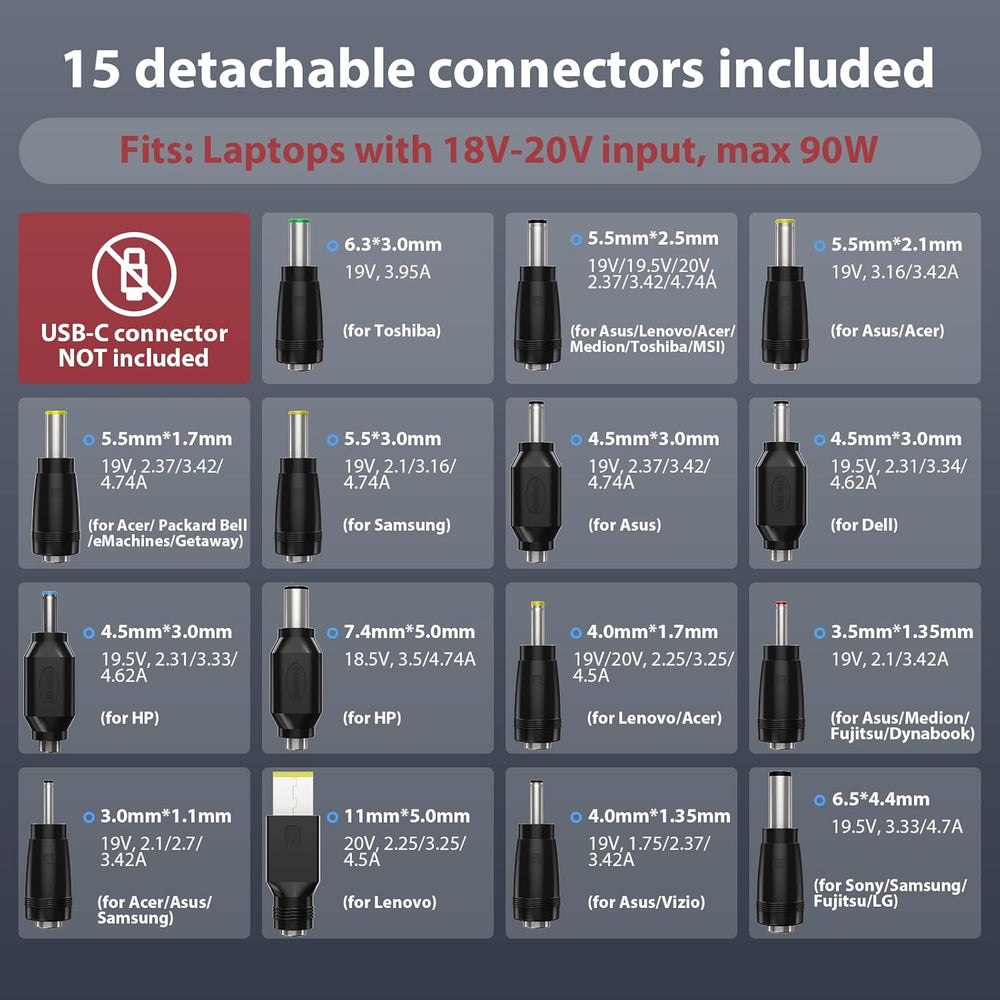 SUNYDEAL 90W Universal Netzteil Laptop Ladekabel Ladegerät für HP Lenovo ASUS Acer Dell Samsung Medi