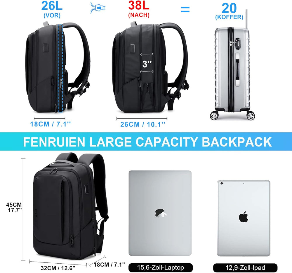 FENRUIEN Laptop Rucksack 26L-38L Rucksack Business Rucksack Herren Laptop Tasche 15.6 Zoll für Herre