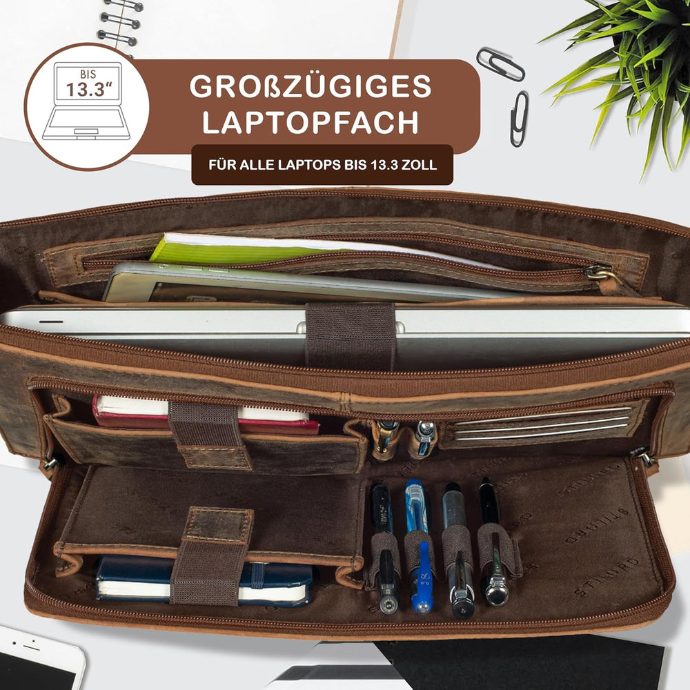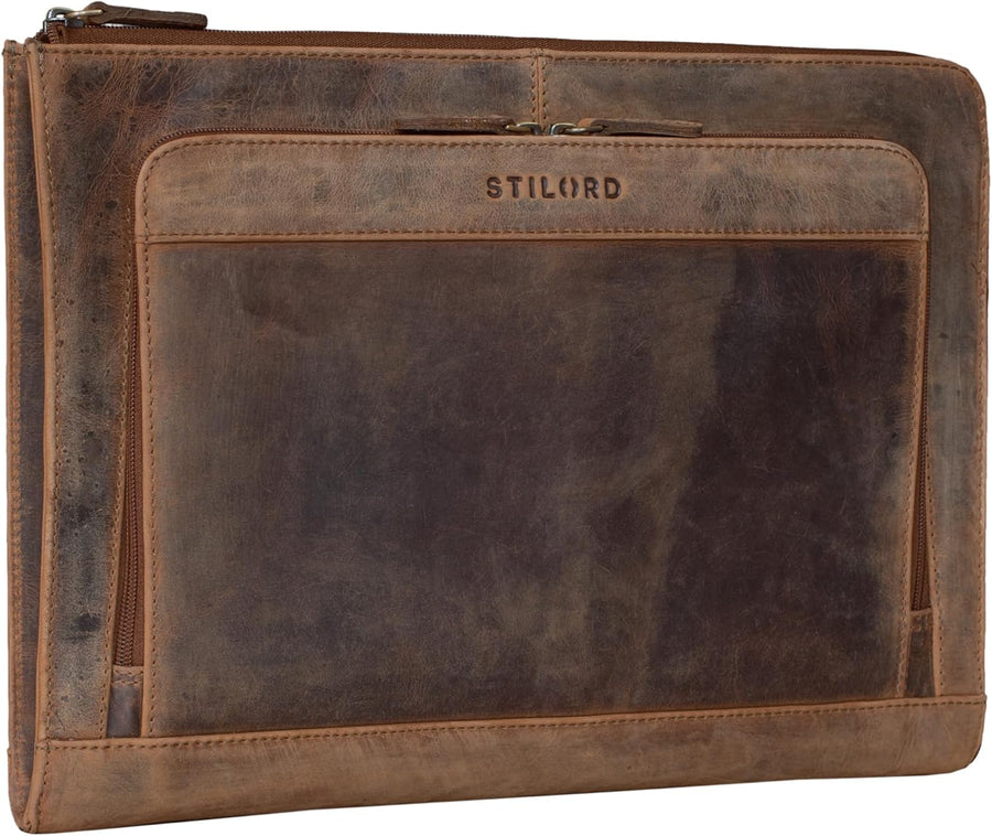 STILORD Dillon Leder Aktenmappe Konferenzmappe 13 Zoll Laptoptasche Vintage Dokumentenmappe Schreibm