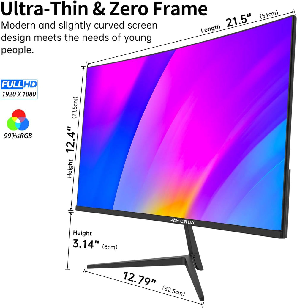 CRUA 24 Zoll Curved Gaming Monitor, 165HZ 2800R 99% sRGB Professional Color Gamut Computer Monitor,w