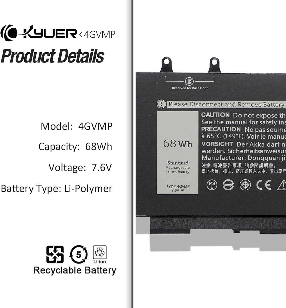K KYUER 68Wh 4GVMP Laptop Akku Replacement für Dell Latitude 5400 E5400 5410 E5410 5500 E5500 5510 E