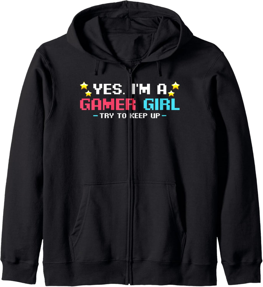 Yes I'm A Gamer Girl Try To Keep Up Computerspielerin Lustig Kapuzenjacke