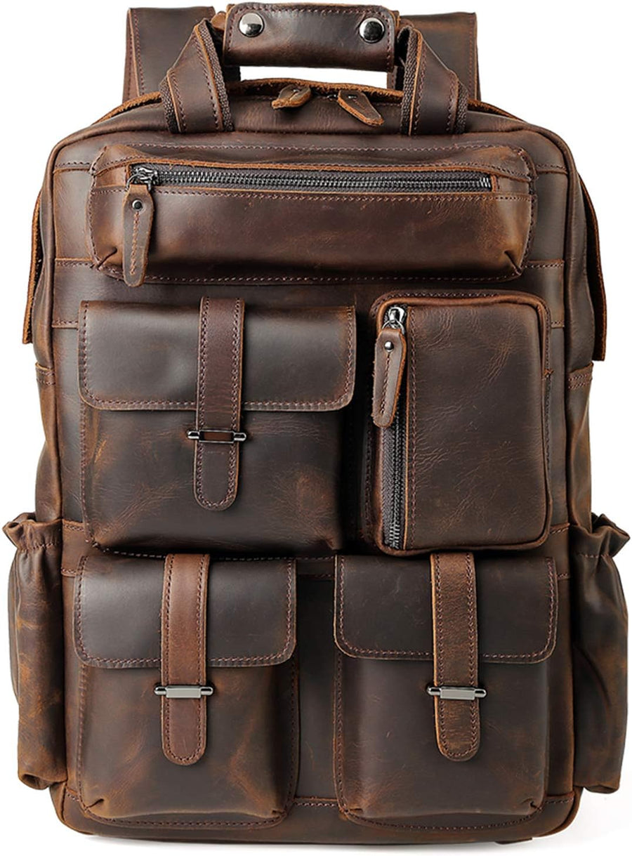 TIDING Herren Rucksack Echtes Leder Grosse Kapazität Business Reisetasche für 15,6 Laptop Tasche, Da