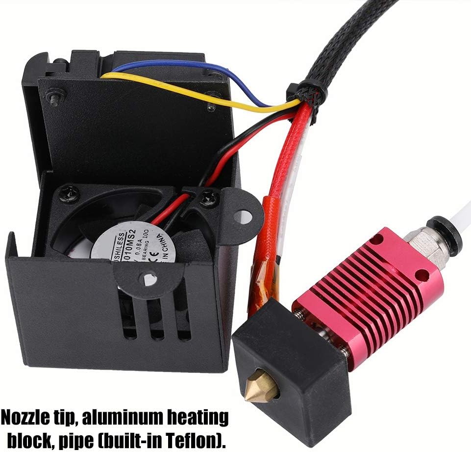 - MK8 Extruder Hot End Kit für Creality 3D CR-10 / CR-10S, roter Draht ist Temperaturfühler, schwarzer Draht ist Heizrohr, 12V 40W, Düse, Aluminiumheizblock, Rohr (eingebautes Teflon).