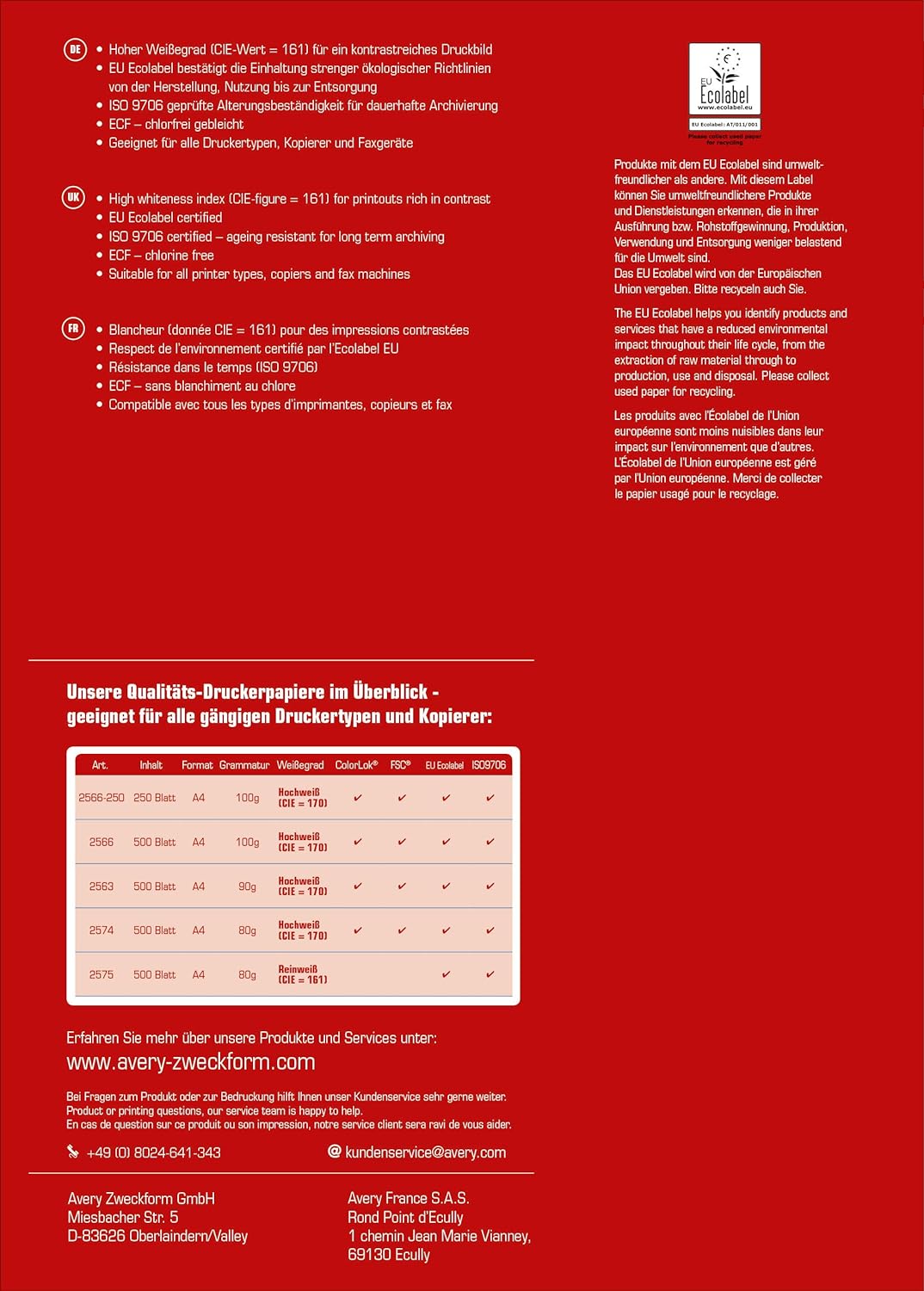 Variante: 2.500 Blatt Bundle mit Avery Zweckform Papier