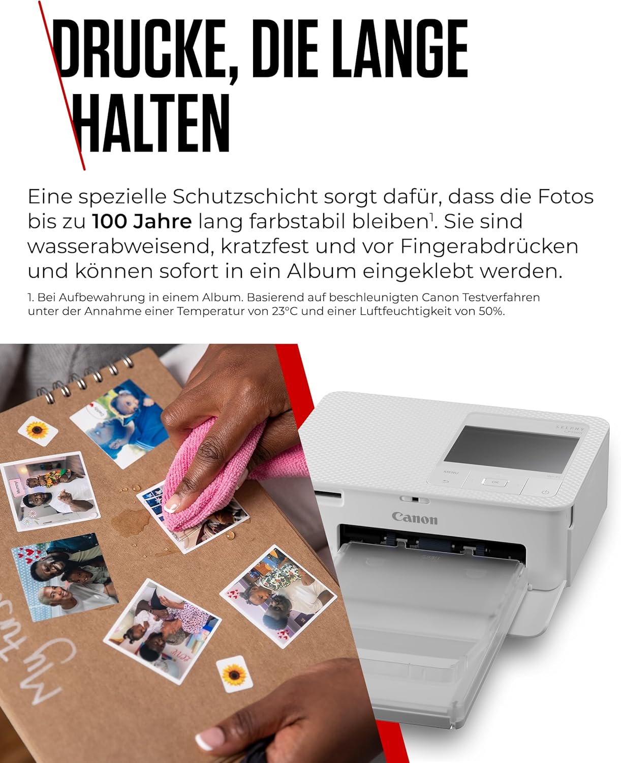 - HOCHWERTIG - Die Fotos sind wasserabweisend, kratzfest & vor Fingerabdrücken geschützt und werden mit 16,7 Millionen Farben dank Thermosublimations Technologie schnell gedruckt - dank Schutzschicht bleiben die Bilder im Album bis zu 100 Jahre farbstabil