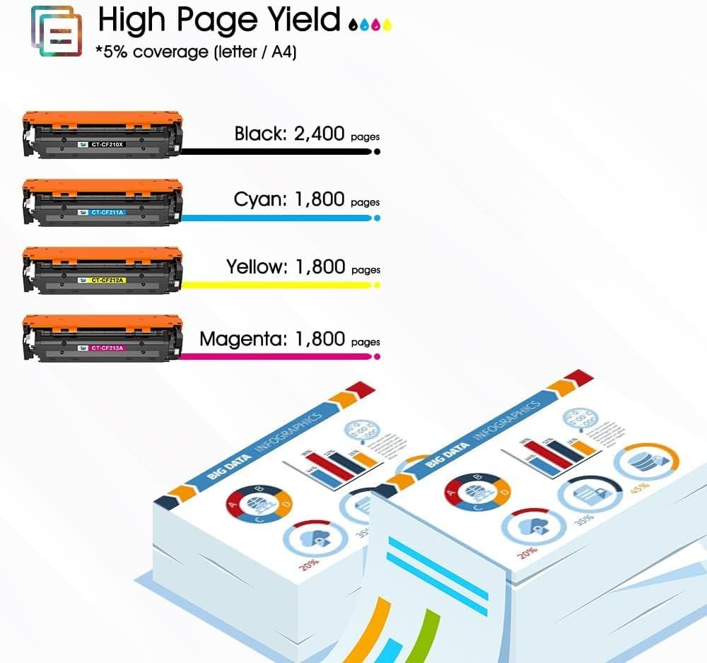 - Farbe: 2 x Schwarz CF210X, 1 x Cyan CF211A, 1 x Gelb CF212A, 1 x Magenta CF213A