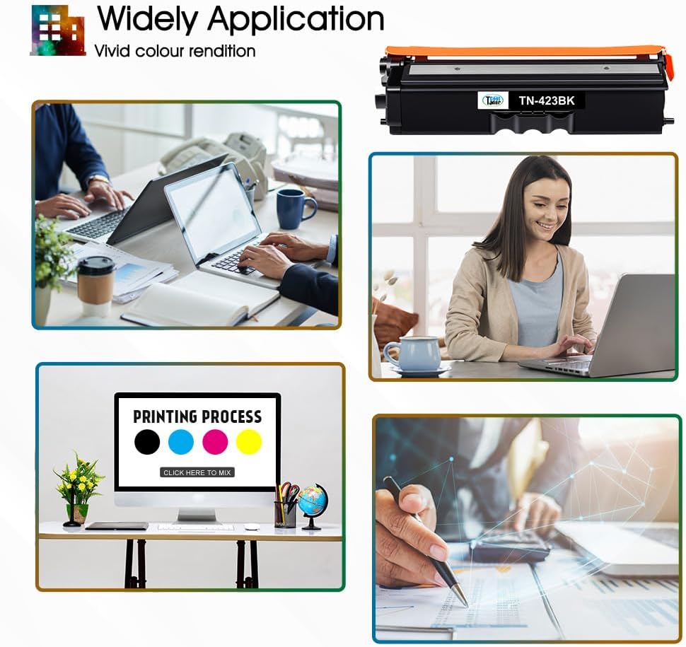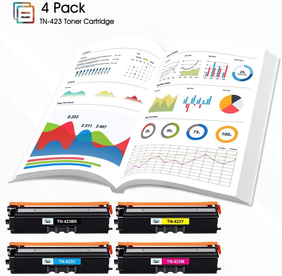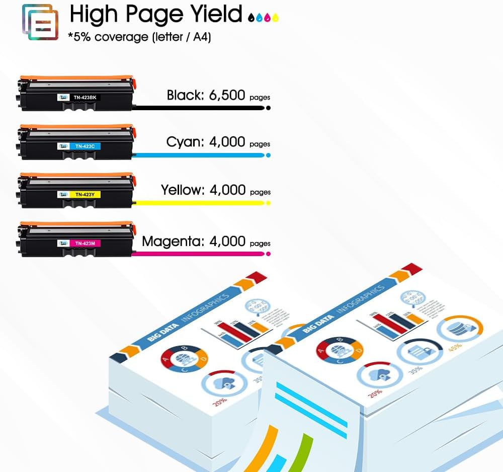 - Seitenleistung: 6.500 Seiten pro TN423BK, 4.000 Seiten für TN423C TN423M TN423Y Tonerkartusche (Letter/A4, bei 5% Deckung)