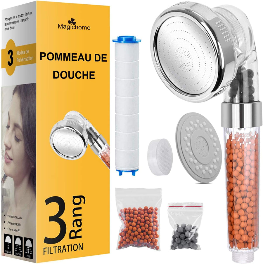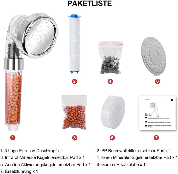 - 【Aktualisierter 3-Stufen-Filter】 Unser Duschkopf hat eine zusätzliche Filterschicht; dies macht das Wasser weich (hohe Konzentration an Calcium- und Magnesiumionen) und hilft, Chlor und Fluor, Schwermetalle und Bakterien sowie Rost zu entfernen und