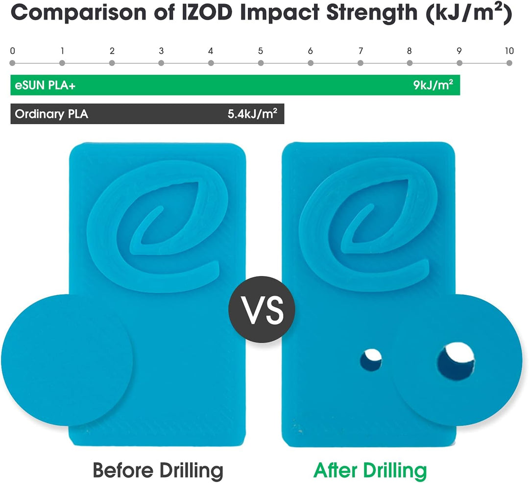 - 【Masstoleranz +/- 0.03mm】eSUN PLA+ 3D Druckerfilamente werden mit genaueren Spezifikationen hergestellt. Minimale Toleranz und geringes Verziehen, um eine gleichmässige Zufuhr und stabile Drucke zu gewährleisten, keine Blasen, weniger Fadenbildung,