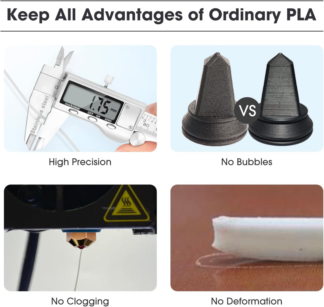 - 【Gute Bedruckbarkeit】 PLA+ behält alle Vorteile von PLA, einfach zu drucken wie gewöhnliches PLA, geringe Schrumpfung, keine Verformung, keine Risse, hohe Druckpräzision. Weit verbreitet in Maschinen, elektronischen Geräten, Autos, Dekorationen,