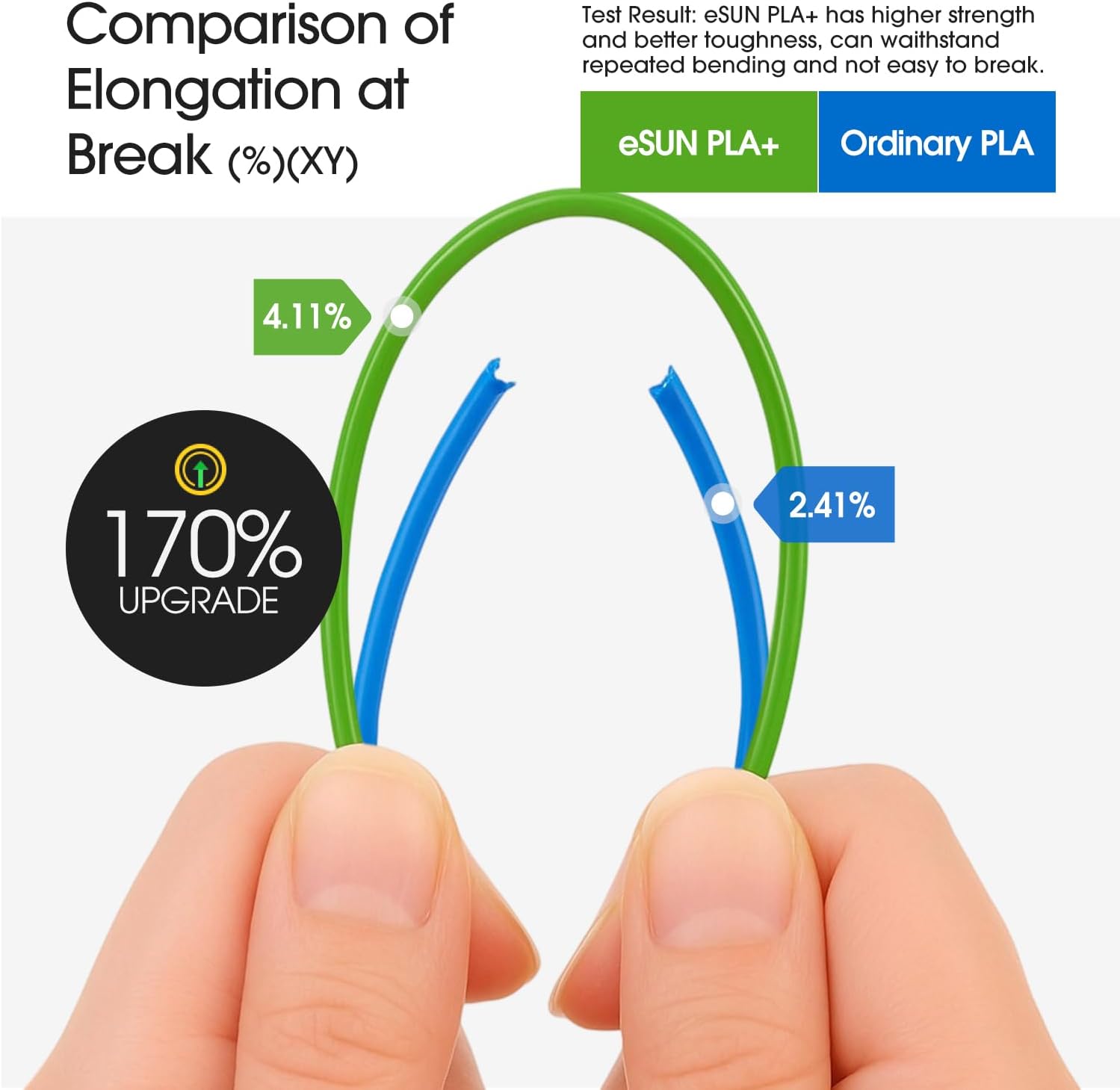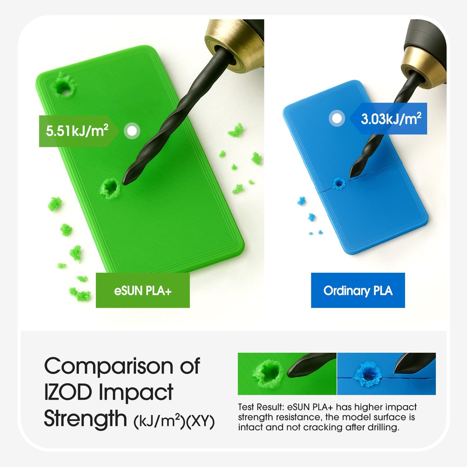 - 【Masstoleranz +/- 0.03mm】eSUN PLA+ 3D Druckerfilamente werden mit genaueren Spezifikationen hergestellt. Minimale Toleranz und geringes Verziehen, um eine gleichmässige Zufuhr und stabile Drucke zu gewährleisten, keine Blasen, weniger Fadenbildung,