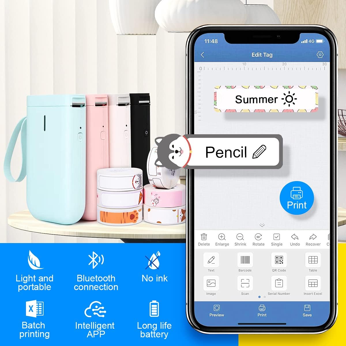 - Der Etikettendrucker verwendet zum Drucken Wärme, sodass keine Tinte oder kein Toner erforderlich ist, schön gestaltet und kompakt, kann mit der Hand gedruckt werden. Verwenden Sie wiederaufladbare Batterien, die mit einem USB-Kabel zum Aufladen