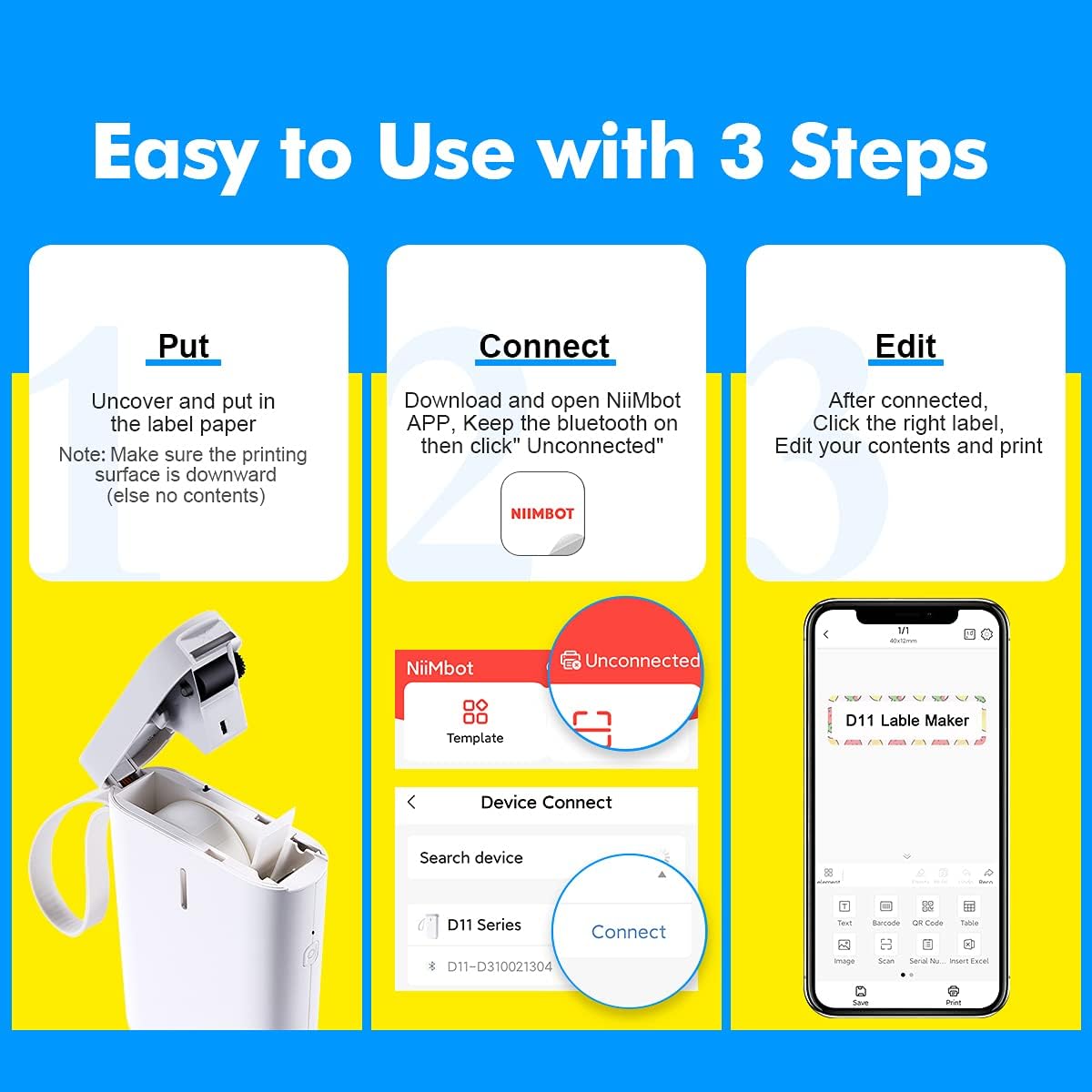 - Einfach einzurichten und zu verwenden, Sie müssen nur die App herunterladen und über Bluetooth mit dem Etikettendrucker verbinden, wird mit einer weissen Papierrolle geliefert. Nach dem Öffnen des Deckels und der Installation erkennt die App