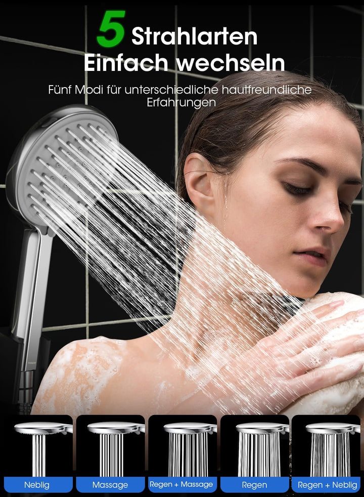 - 【ABS-Mehrschichtbeschichtung】 Dieser Handbrausekopf ist aus hochwertigem ABS (Acrylnitril-Butadien-Styrol)-Material und mehrschichtiger Verchromung hergestellt, was den Duschkopf leicht, langlebig, korrosionsbeständig und farbecht macht und Sorgen Sie für eine längere Lebensdauer.