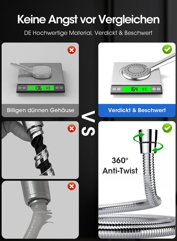 - 【Nicht nur wassersparende, sondern auch Hochdruckduschen】In 2000+ Umfragen haben wir festgestellt, dass, wenn wir ein komfortables Badeerlebnis geniessen, der Wasserdruck der Dusche nicht ignoriert werden kann. FASDUNT Dieser Hochdruck-Duschkopf verwendet fortschrittliche Turbolader-Technologie, die deinen Wasserdruck effektiv verbessern kann. Turbolader-Technologie und Wassersparer sind gut ausbalanciert, um Ihnen das komfortabelste Badeerlebnis zu bieten!