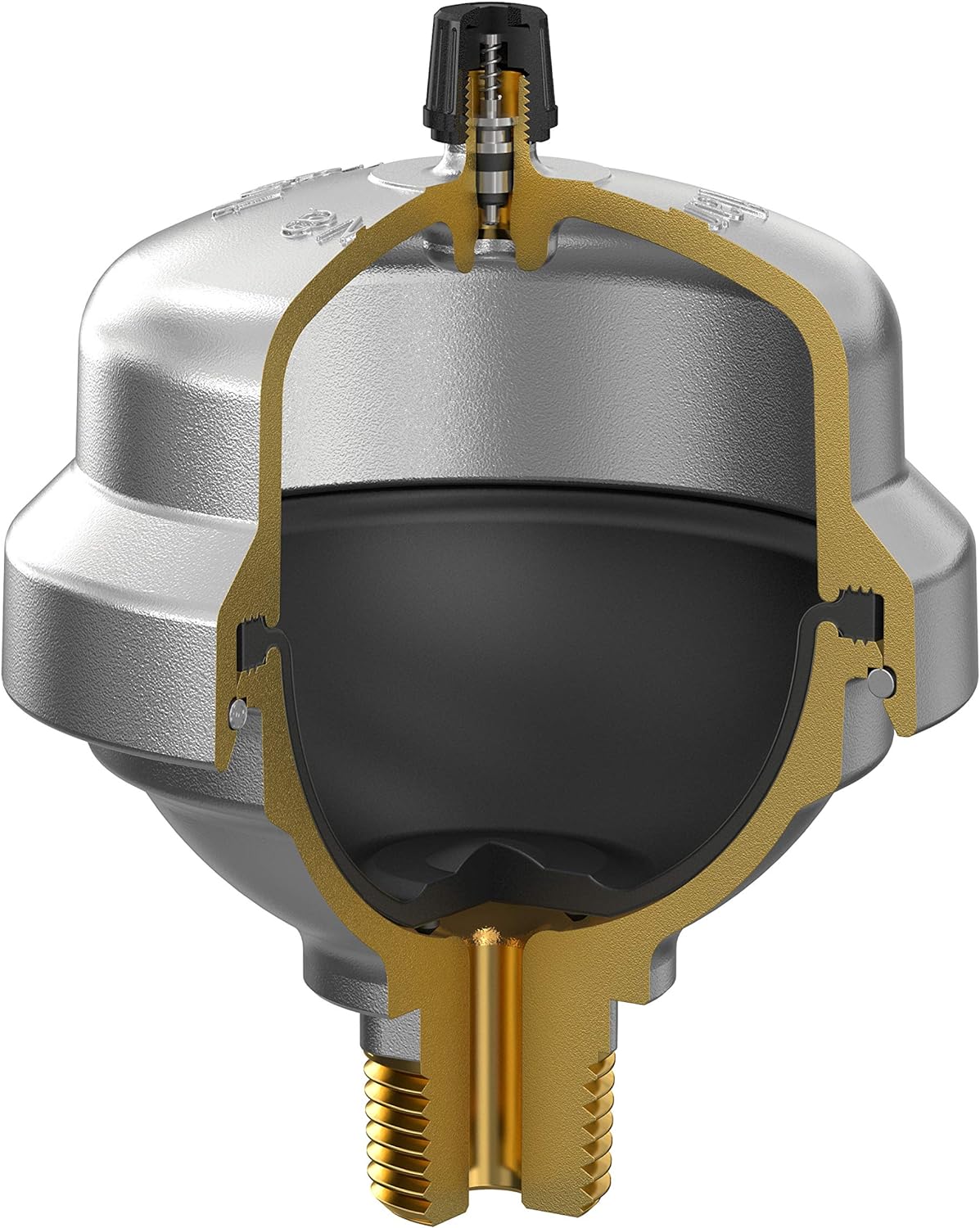 - Der Wasserschlagdämpfer ist aus hochwertigem Messing gefertigt und vernickelt.