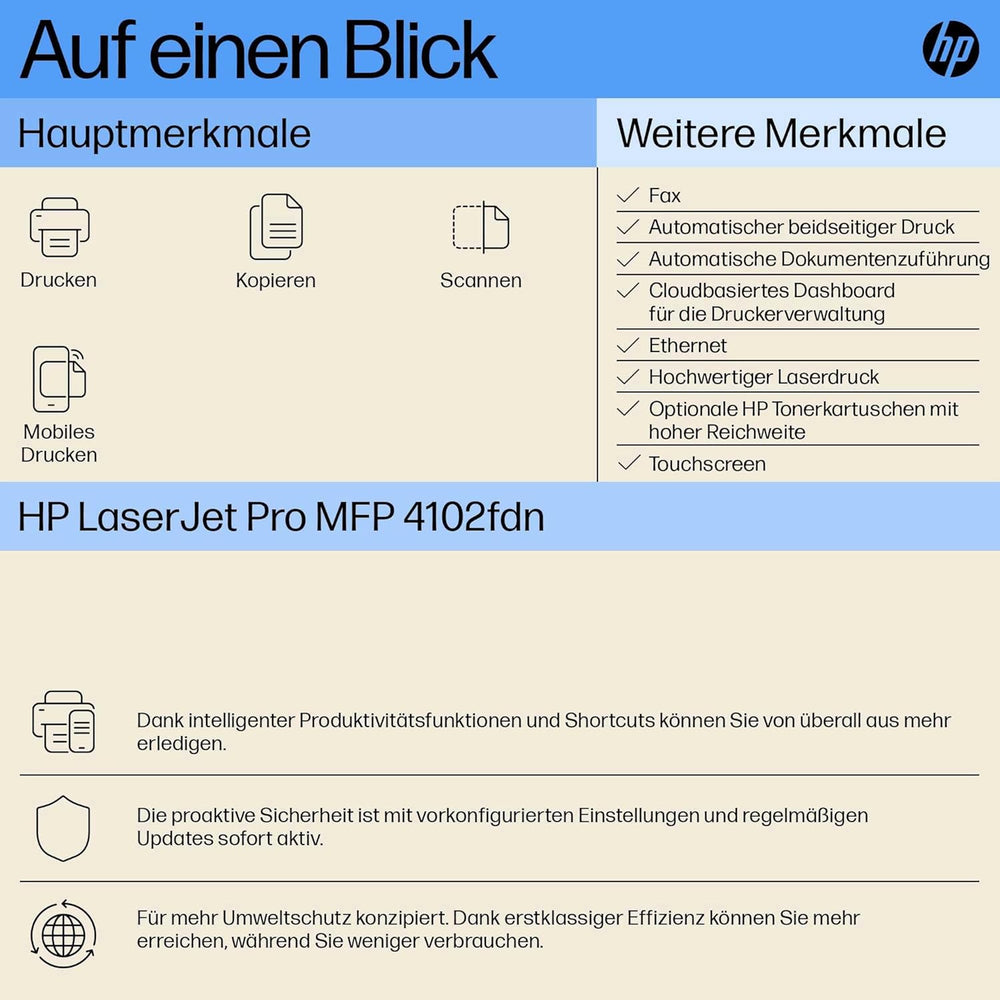 - Hochproduktiver Laserdrucker mit schnellem beidseitigen Druck und 50-Blatt-ADF für beidseitiges Scannen in einem Durchlauf; Drucken und dabei Zeit sparen - mit den Shortcuts von HP Smart