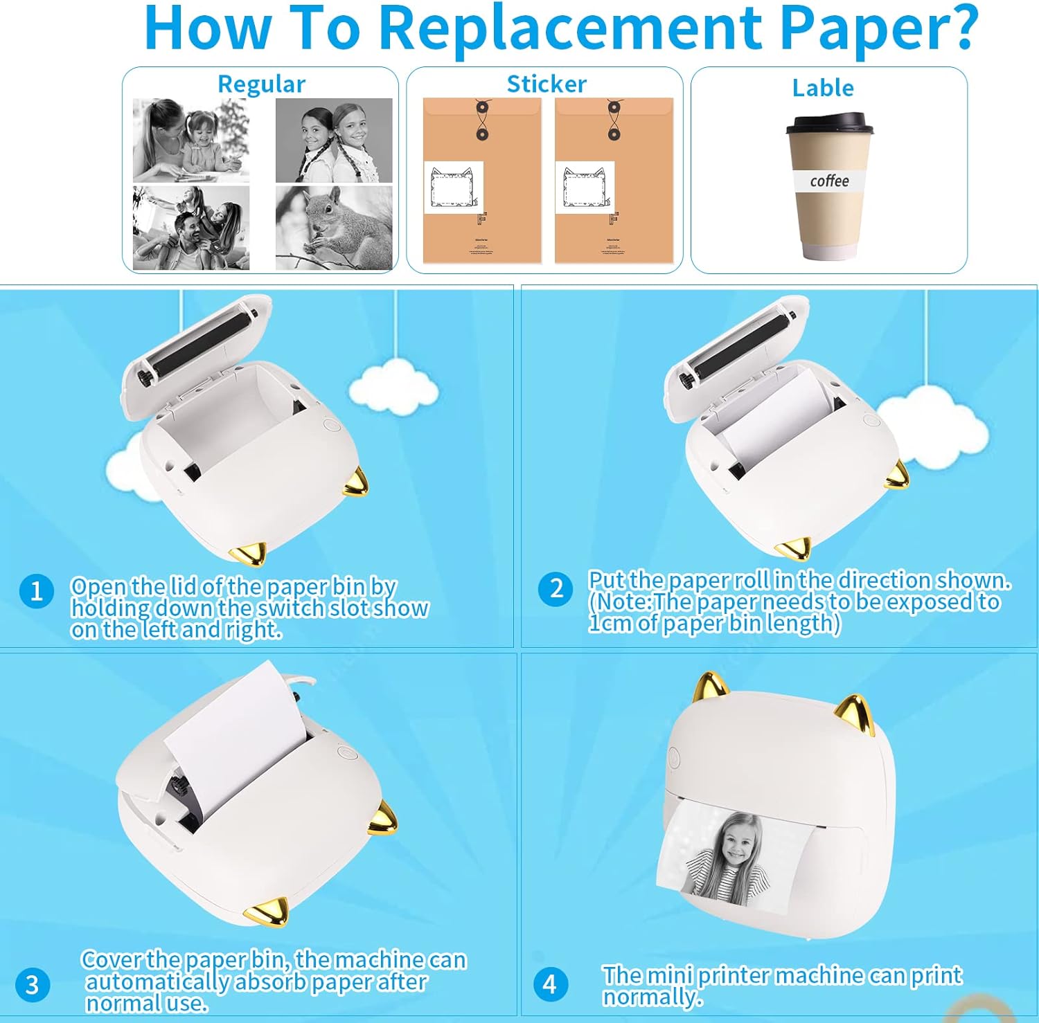 - Paket beinhaltet: 1 * Taschendrucker; 5 *Rollen selbstklebendem Thermopapier, 5 *Rollen Thermopapier geliefert; 1 * Aufkleberpapier; 1 * USB-Kabel, 1 * Benutzerhandbuch. Er kann verwendet werden als Geschenk für Ihre Kinder, Liebhaber, Freunde und