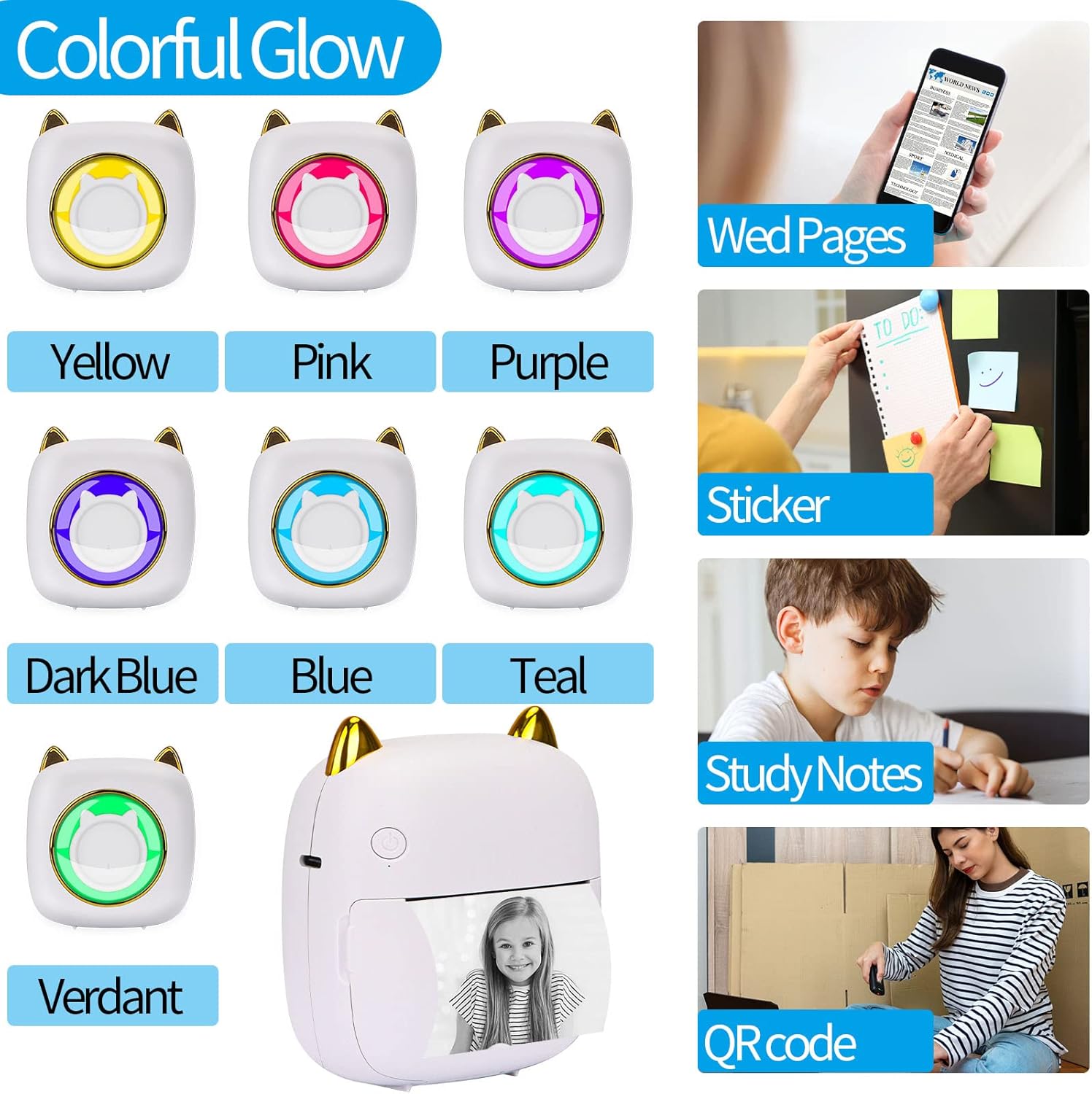 - Multifunktionaler Mini Drucker mit LED-Licht: )Ein lustiger kleiner Drucker 7 farbige Lichter, der für die Aufzeichnung Ihres Lebens entwickelt wurde, kann nicht nur Fotos und Etiketten direkt drucken, sondern auch selbst bearbeitete Memos, Nachrichten,
