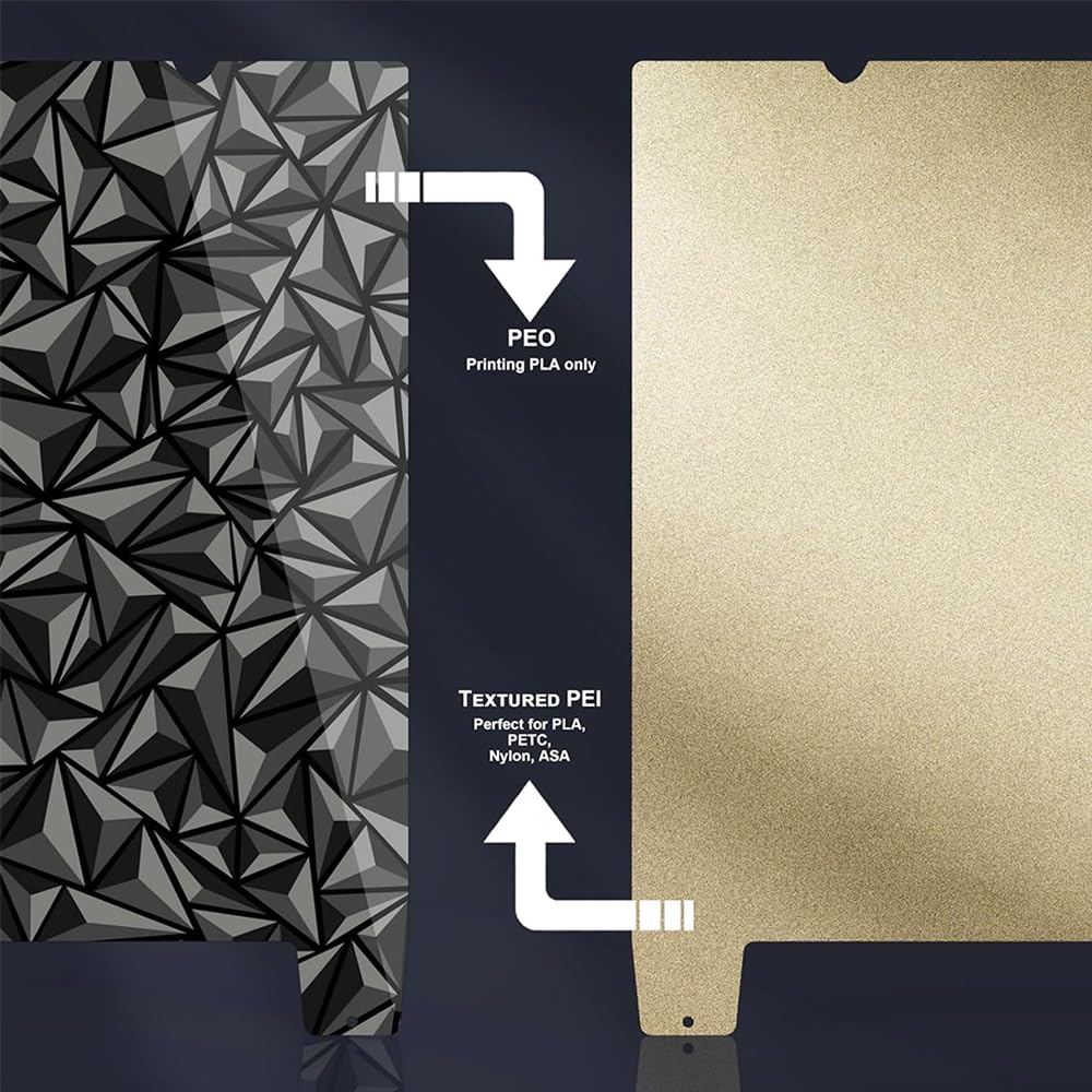 - 【Doppelseitiges strukturiertes PEI und glattes PEO-Bauplattendesign】: Das grosse doppelseitige Plattformblatt bietet breitere Materialkompatibilität und doppelte Lebensdauer im Vergleich zu einseitigen Plattformen. PEI Bettmatte hat eine raue