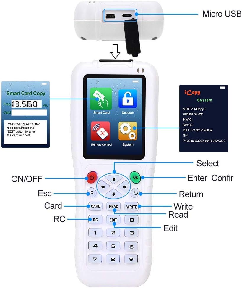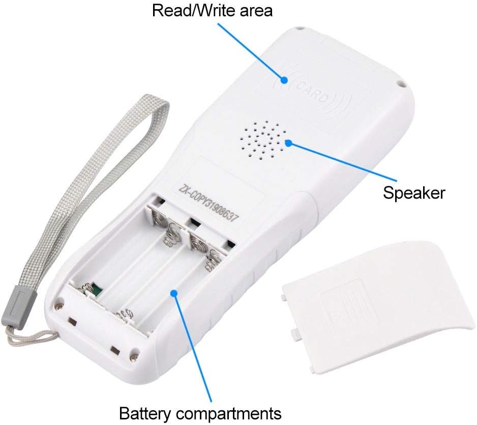 - Paketliste: ein RFID-Kartenkopierer + ein USB-Kabel + 5 Stück 13,56-MHz-UID-Schlüsselanhänger + 5 Stück wiederbeschreibbare 125-kHz-Schlüsselanhänger