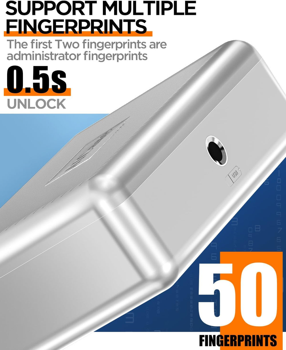 - 【Fingerabdruck-Biometrie-Technologie】 Diese biometrische Fingerabdruck-Box verwendet hochwertige biometrische Fingerabdruck-Technologie, Sekundenschnelle Erkennungsgeschwindigkeit und zeichnet 50 Fingerabdrücke auf. Kein Fingerabdruck in den