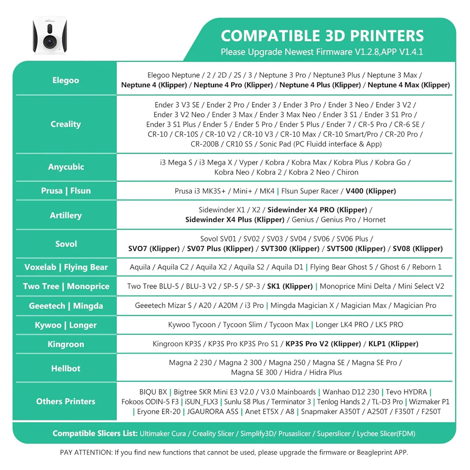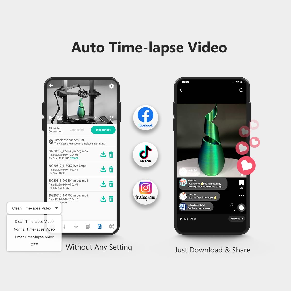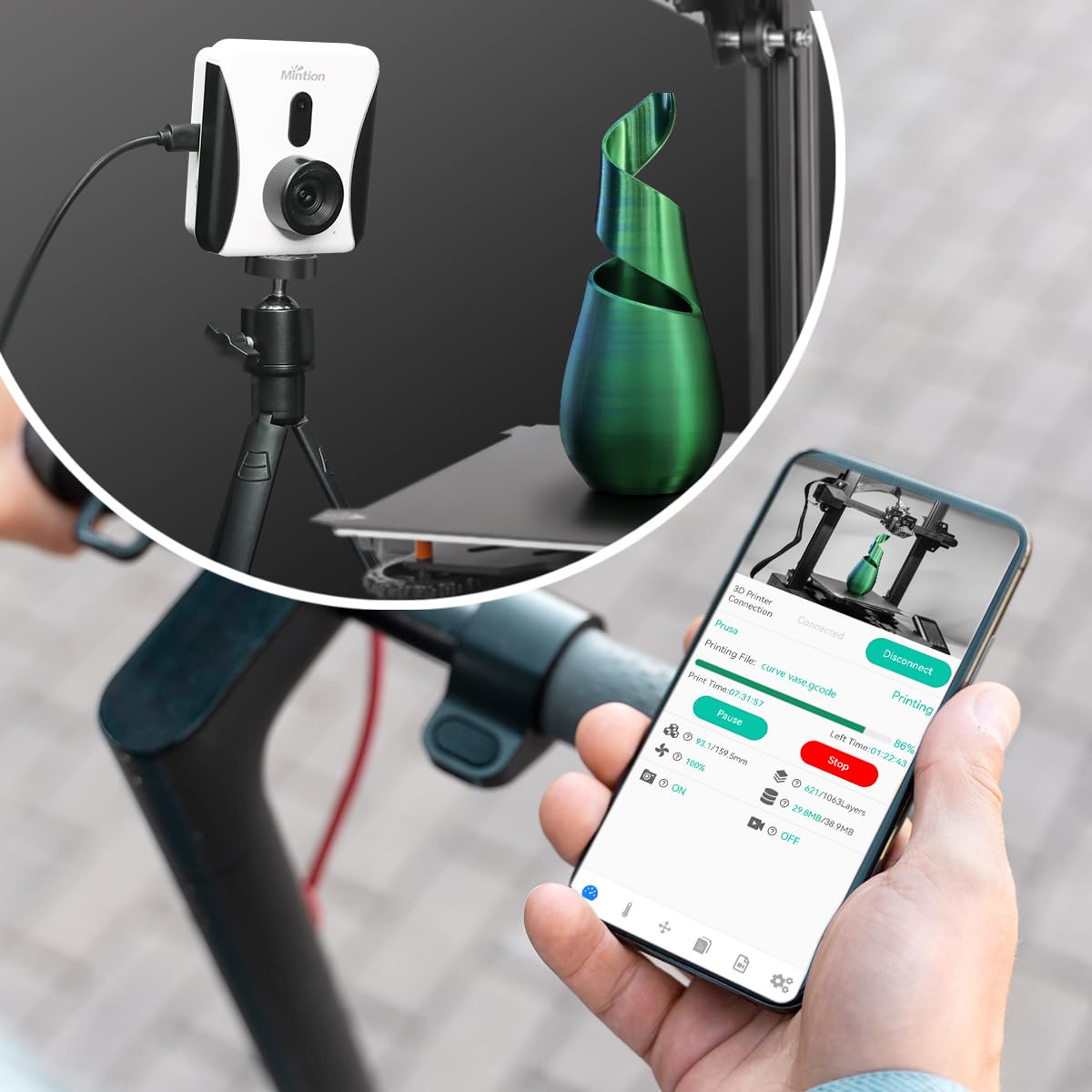 - Gerätekompatibilität: Die Kamera unterstützt APP- und PC-Browser (dasselbe lokale Netzwerk) und Sie können Gcode-Dateien problemlos hochladen, ohne die SD-Karte manuell am 3D-Drucker ein- und ausstecken zu müssen. Kompatibel mit den meisten Marlin