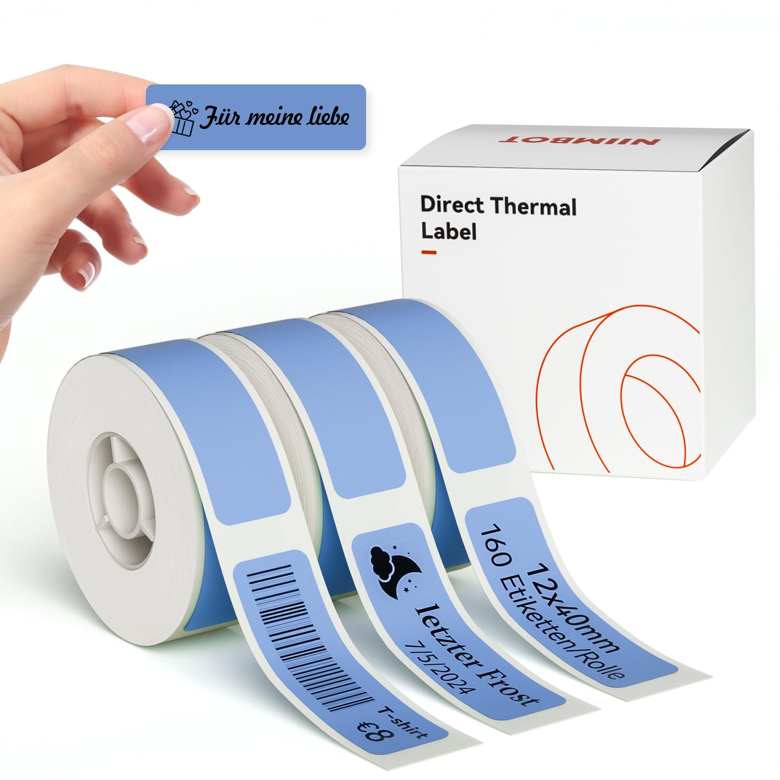 - Was Sie erhalten: 3 Rollen selbstklebender Thermo-Etiketten, 160 Etiketten/Rolle, mit den Massen 12 x 40mm (0,47'' x 1,57''). Dieses Etikettenpapier ist kompatibel mit dem NIIMBOT D11/D110/D101 tragbaren Bluetooth-Etikettendrucker, bitte wählen Sie