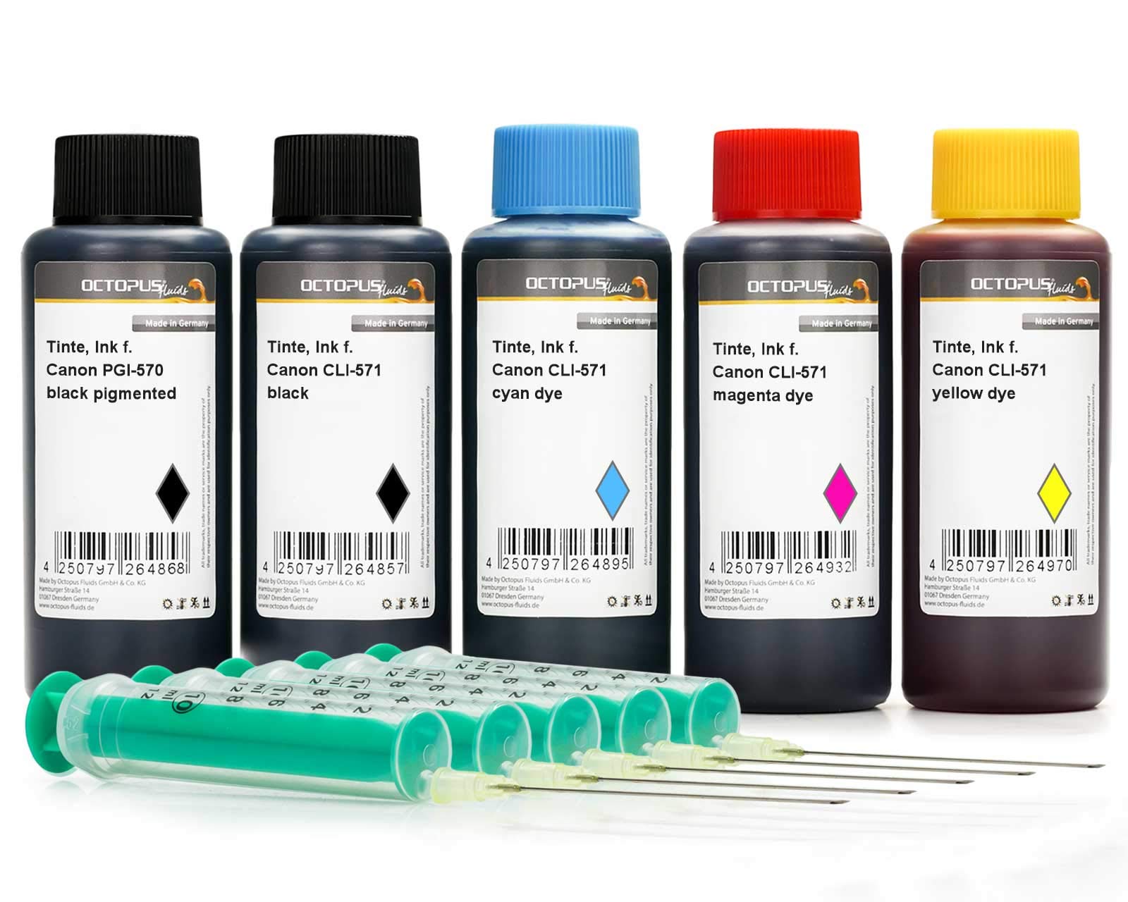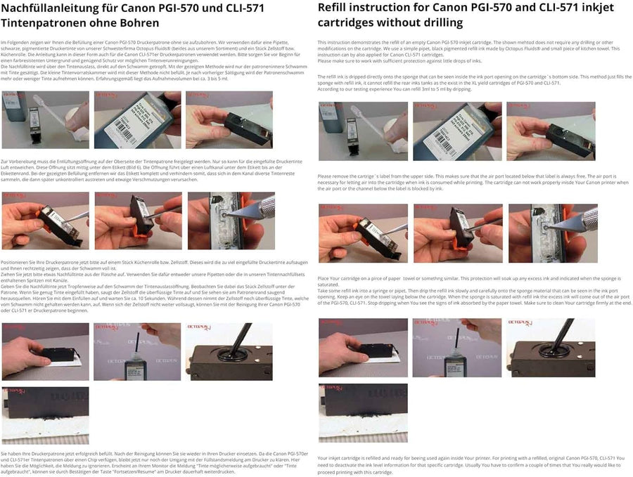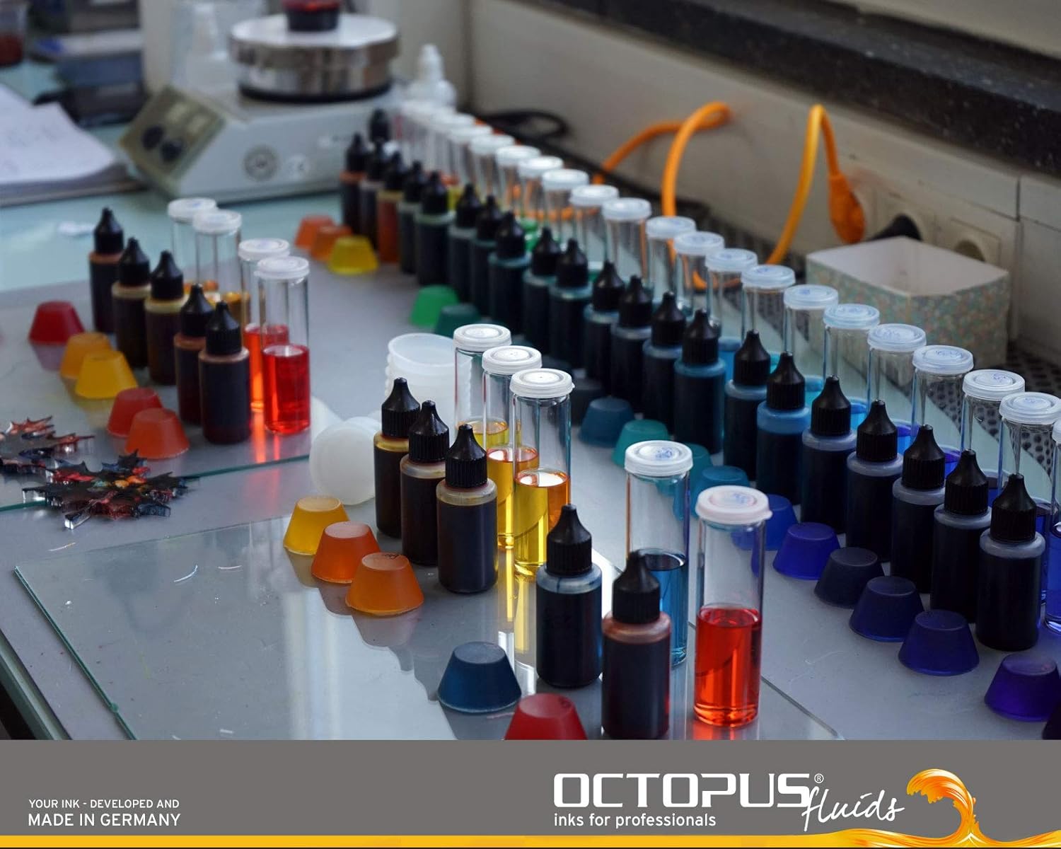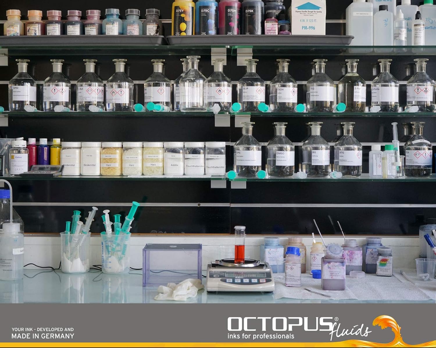 - Made in Germany. Die Entwicklung und Herstellung dieser Tinte erfolgt im Labor der Octopus Fluids GmbH & Co. KG.