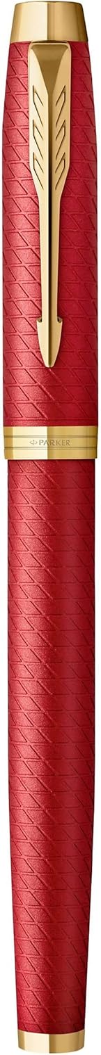 - Souveräner Schaft und souveräne Kappe in mattroter Lackierung mit eingraviertem modernen Linienmuster, veredelt durch Goldzierteile und den unverkennbaren Parker Pfeil-Clip