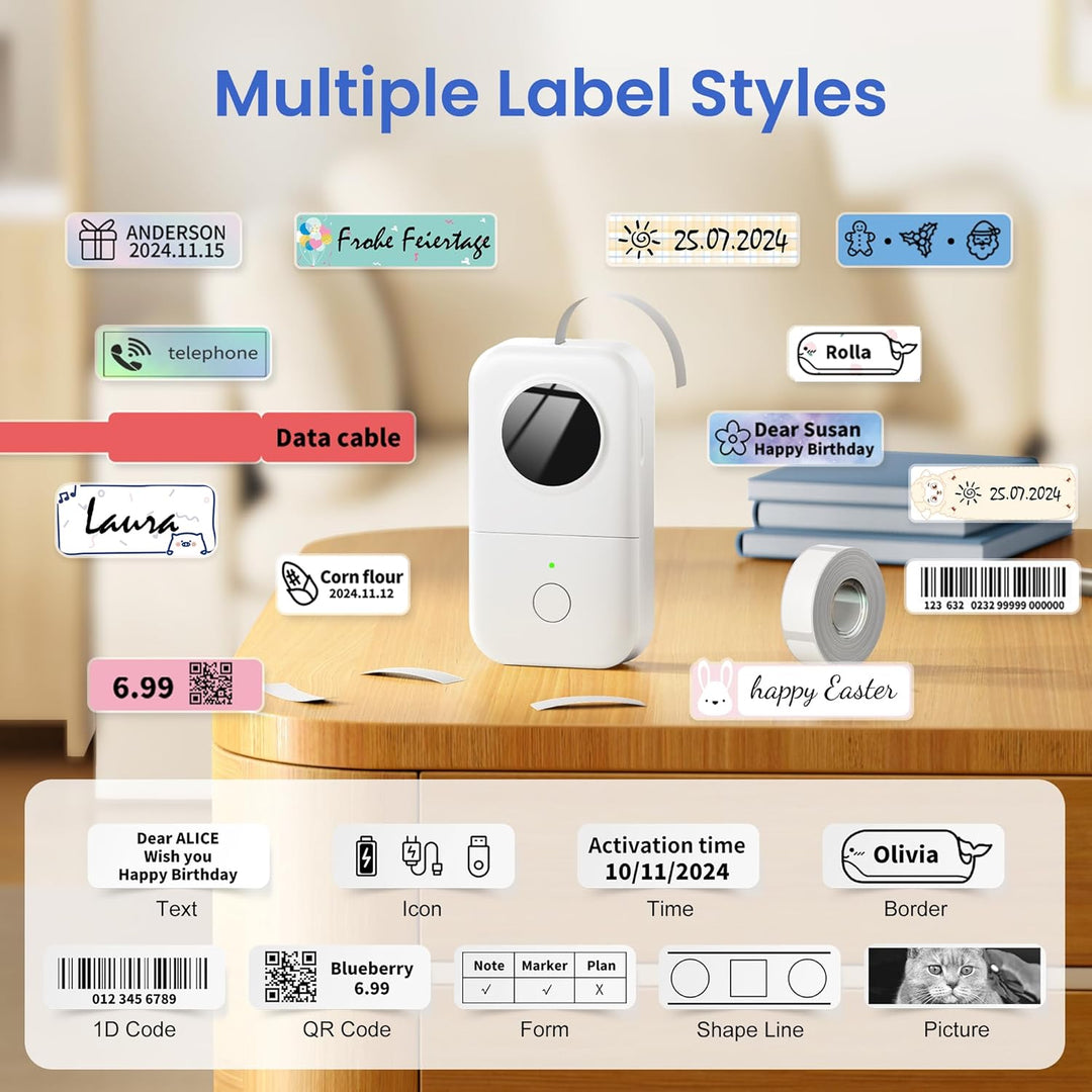 - √ WIRELESS PORTABLE - Kabelloser Mini Bluetooth Etikettendrucker für schnelles und einfaches Drucken und Erstellen von Etiketten von Ihrem Smart-Mobilgerät aus. Eingebauter langlebiger Akku für lange Betriebszeiten, passt in jede Tasche, leicht zu