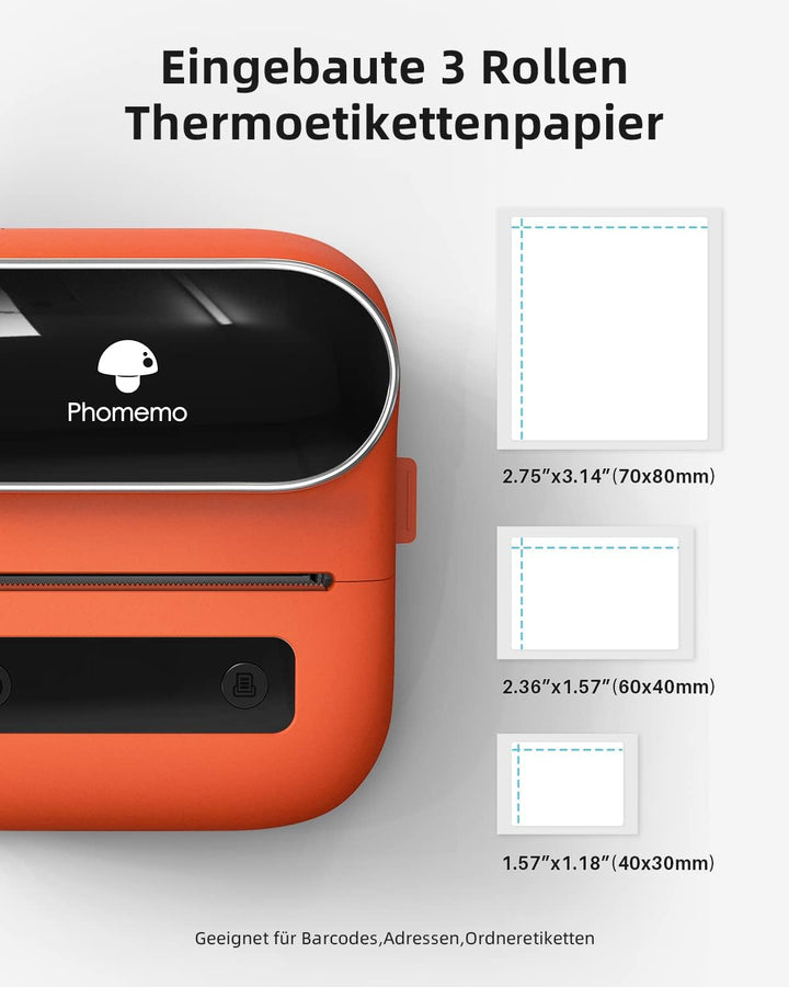 - Print Master APP - Das Forschungs- und Entwicklungsteam von Phomemo erstellt für Sie die Print Master APP mit einer Vielzahl integrierter Funktionen. Ein-Klick-Nutzung: Text, Bilder, Barcodes, QR-Codes, OCR, Formular, Hunderte von Symbolen , und viele