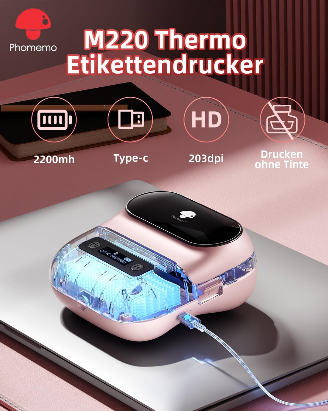 - Neu aufgerüsteter Thermo-Etikettendrucker - Der Phomemo m220 Etikettendrucker bietet fortschrittliche Thermotechnologie, hohe Druckqualität mit 203 DPI, keine Tinte und keine Farbbänder mehr und geringere Kosten im Vergleich zu Tintenstrahldruckern.