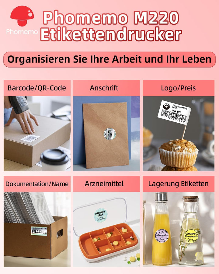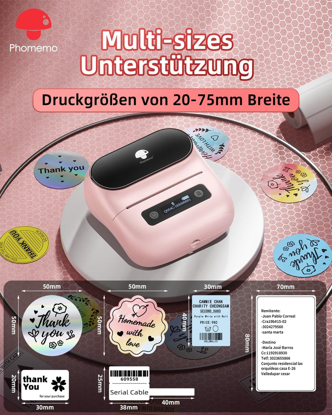 - EIGNUNG FÜR ZUHAUSE / BÜRO / KLEINES UNTERNEHMEN - Phomemo M220 Etikettendrucker ist kompakt und tragbar, Sie können überall drucken. Nicht nur für den Heimgebrauch geeignet, sondern auch für kleine Unternehmen: Kleidung, Handwerk, Einzelhandel,