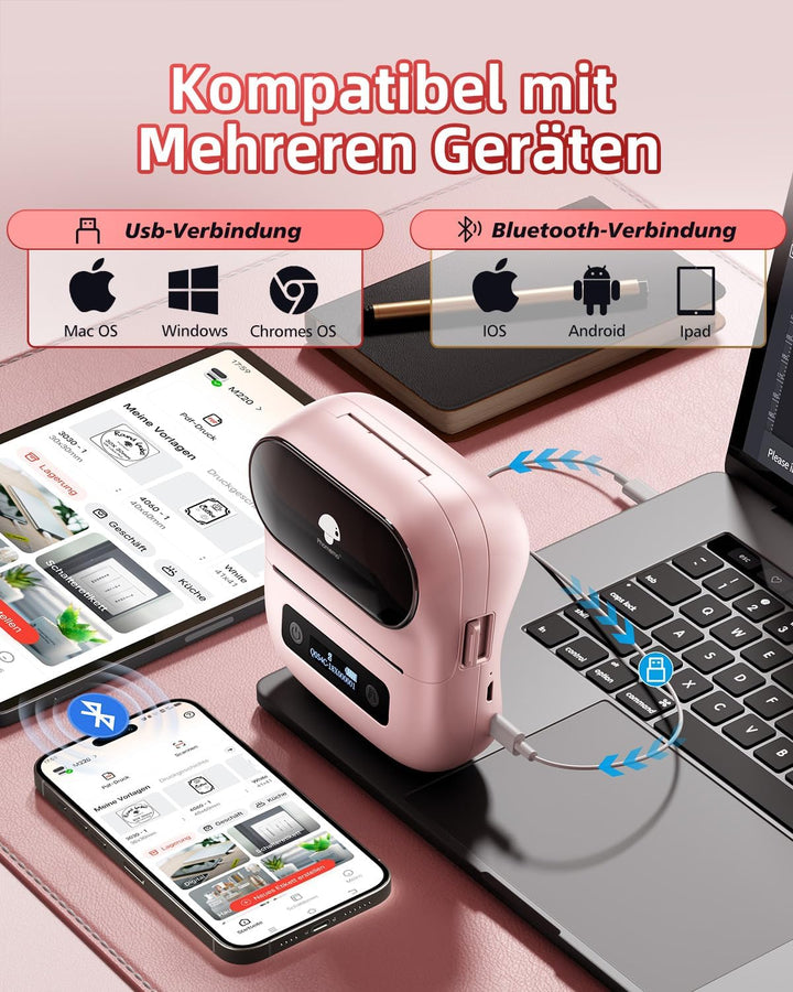 - Starke Kompatibilität - Phomemo M220 Etikettendrucker Downloads "Print Master" App von Google Play oder App Store verbindet sich mit IOS / Android Smartphones und iPads über Bluetooth, und auch Downloads "Labelife" App verbindet sich mit Mac OS und