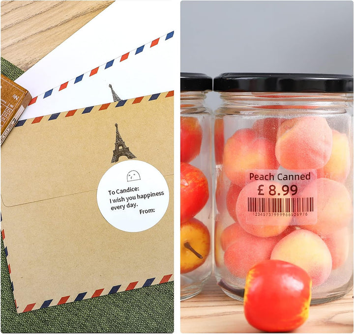 - MULTIFUNKTIONALER ETIKETTENDRUCKER FÜR ALLE ➡ Druckbreite von 20 bis 50 mm (NICHT für 4x6 Versandetiketten). Verschiedene Etikettenvorlagen und optionale Etikettengrössen stehen zur Verfügung, um den Anforderungen verschiedener Haushalte und
