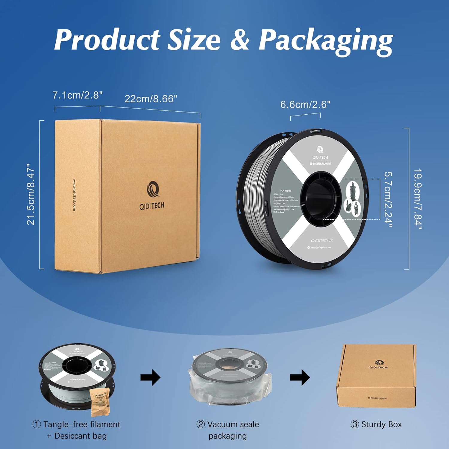 - 【Verwicklungsfrei und feuchtigkeitsfrei】QIDI TECH PLA Rapido Filament 1,75 mm wird vollständig mechanisch gewickelt und streng manuell geprüft, um sicherzustellen, dass die Schnur sauber und weniger verwickelt ist, um ein Reissen und Schnurbrechen